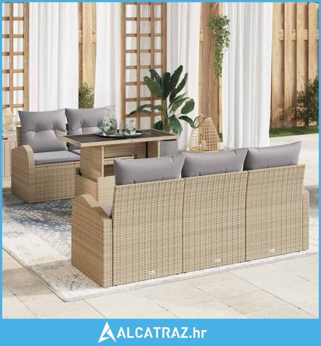 Set Vrtnih Sofa od 6 komada super je spoj udobnosti i stila, savršeno za osvježavanje tvog balkona, terase ili vrta. Njegov moderni dizajn u bež i svijetlosivoj boji dodaje lijepu notu koja se uklapa u vanjski dekor, stvarajući ugodan kutak za okupljanje ili opuštanje.