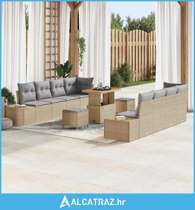 set vrtnih sofa s jastučićima bež poliratan akacija, dvosed vrtni s ja