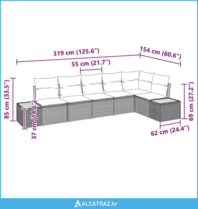 - Otpornost na vremenske uvjete: Izrađeno od kvalitetnog sintetičkog ratana i poliestera, ova sofa može podnijeti UV oštećenja i vremenske uvjete, osiguravajući da je pouzdan dio tvog vanjskog namještaja godinama.