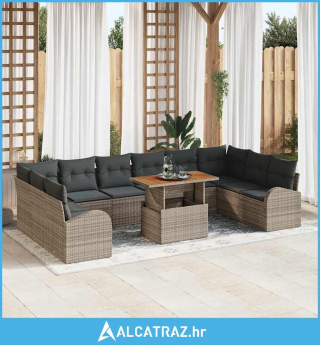 set vrtnih sofa s jastucima od 11 dijelova siva poli ratan - NOVO