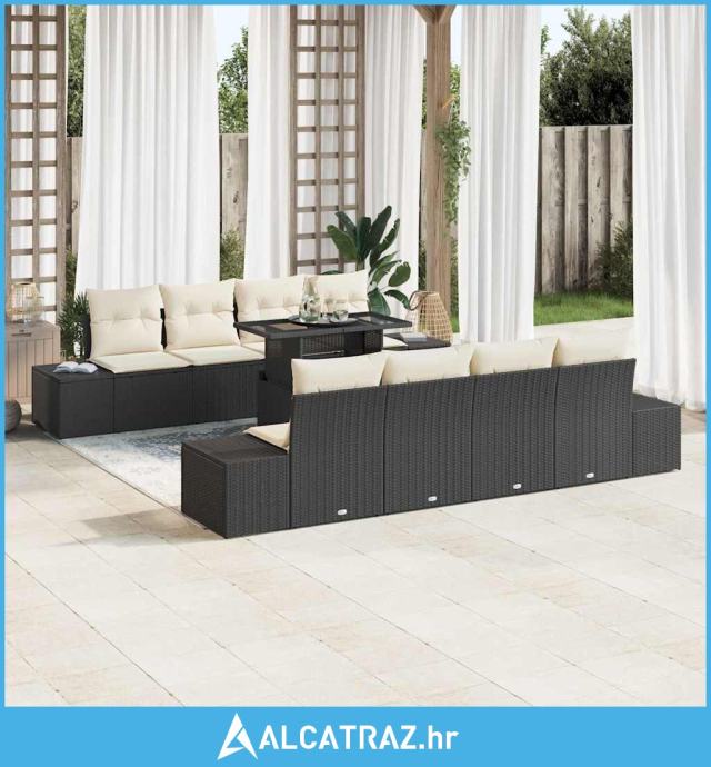 Set vrtnih sofasa od 7 dijelova s jastučićima Crni Poliratan - NOVO