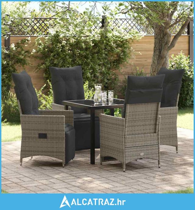 set za vrtno objedovanje od 5 dijelova s jastučićima siva poli ratan -