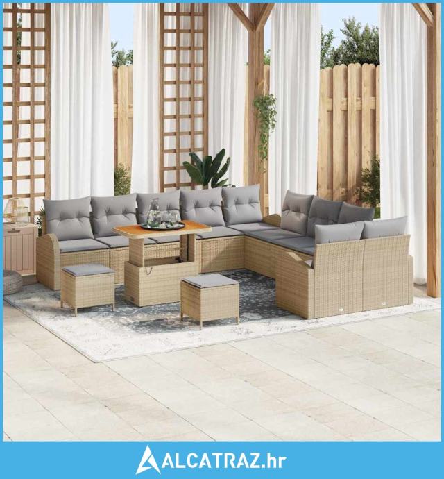Set vrtnog kauča od 13 dijelova s jastučićima bež poli rattan akacija,