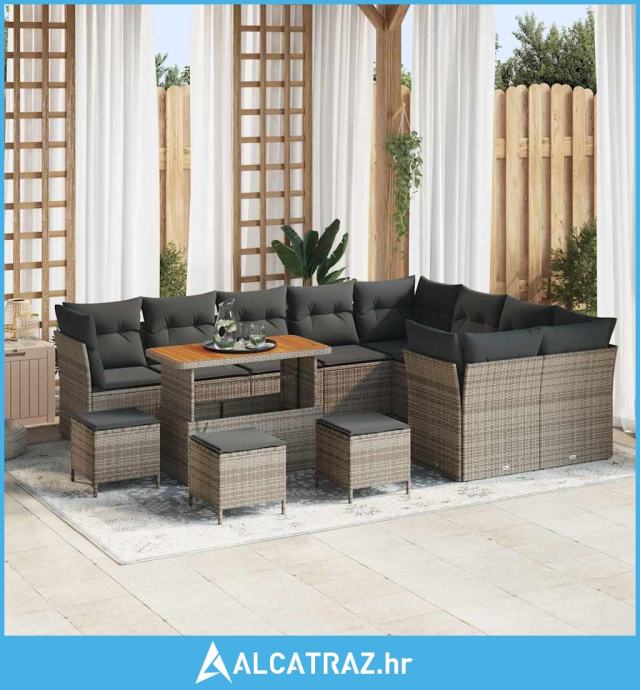 set vrtnog kauča od 13 dijelova s jastučićima sivo poli ratan akacija