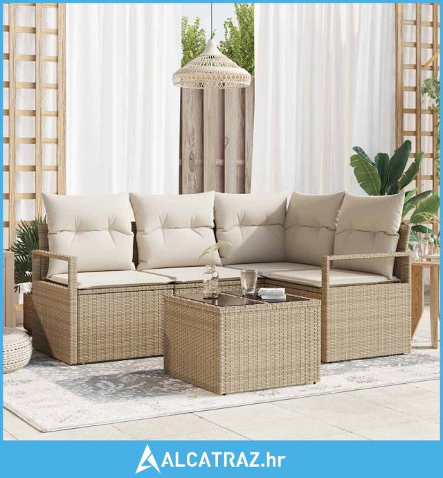 Set vrtnog kauča od 5 dijelova s jastučićima - smeđi poli ratan - NOVO