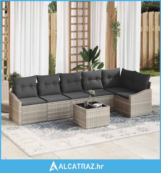 set vrtnog kauča od 7 dijelova s jastučićima siva poliratan - NOVO