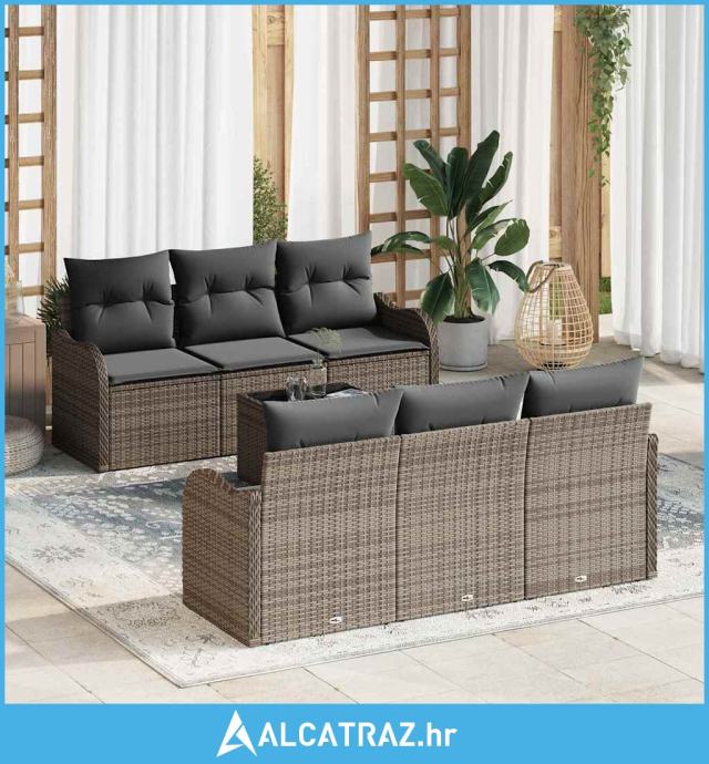 Set vrtnog kauča od 7 dijelova s jastučićima Sivi Poli ratan, Kauč za