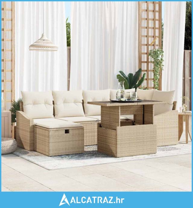 set vrtnog kauča od 7 komada s jastučićima Bež Poly ratan - NOVO
