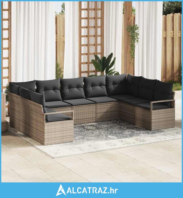 set vrtnog kauča od 9 komada s jastuком siva poli ratan, dvostruki vrt