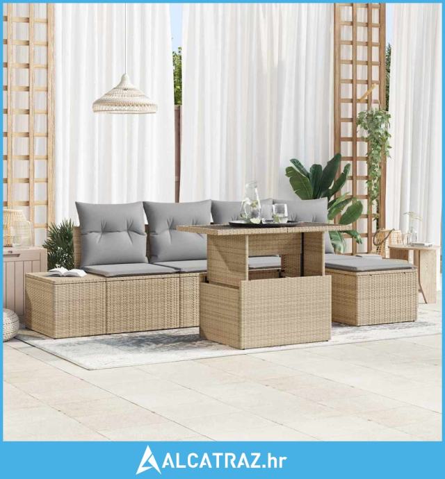 set vrtnog kauča set od 6 bež, siva poli ratan, poliester - NOVO