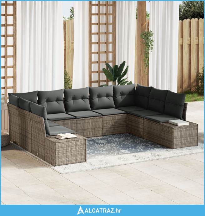 Set vrtnog kauča Set od 9 Siva Ratan Vrtni kauč Pravokutni - NOVO