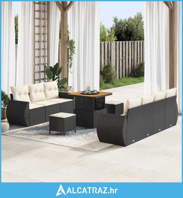 set vrtnog namještaja od 10 komada s jastučićima crni poli ratan akaci