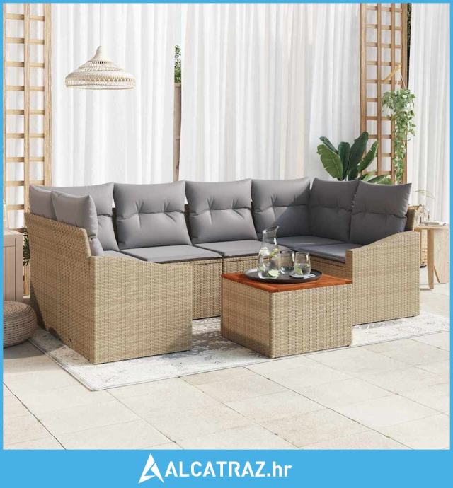 set vrtnog namještaja od 7 dijelova s Jastučićima Bež Poli Ratan Akaci