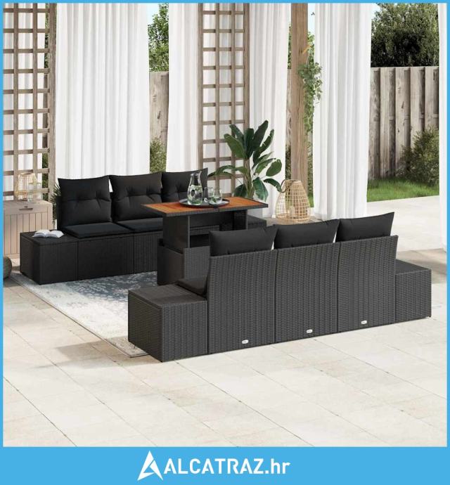set vrtnog namještaja od 7 komada s jastučićima Crni Polirat - NOVO
