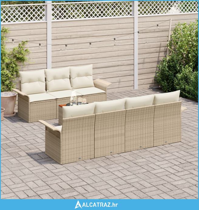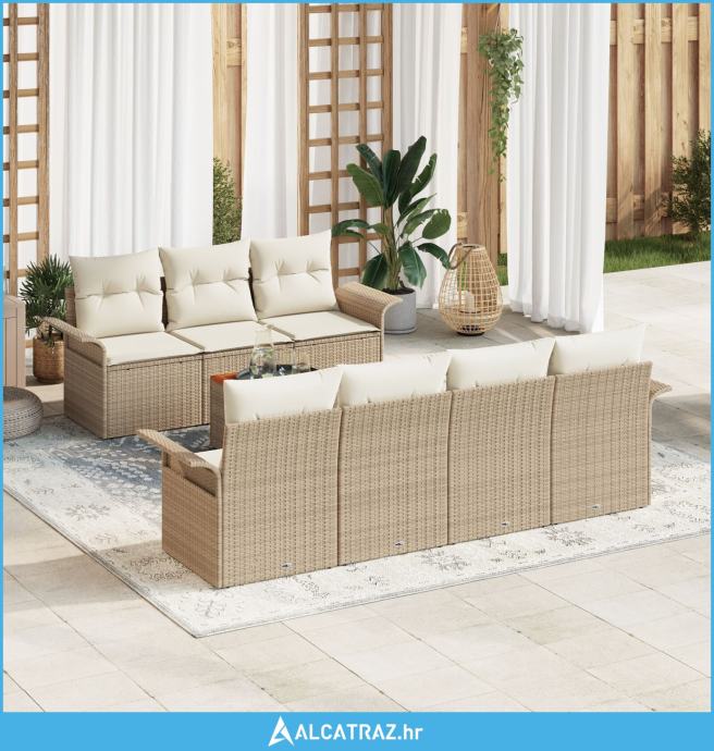 set vrtnog namještaja od 8 dijelova s jastučićima bež poli ratan akaci