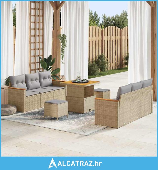 set vrtnog namještaja od 9 komada s jastučićima bež poli ratan akacija