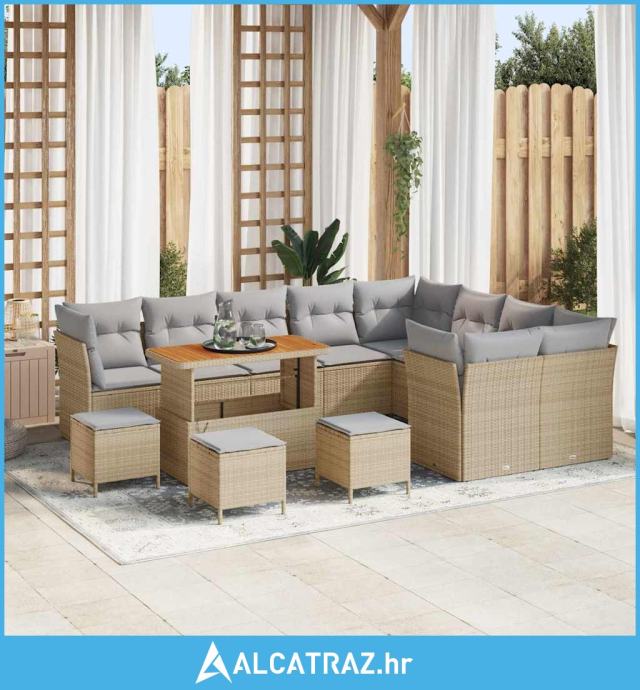 set vrtnog sofa od 13 komada s jastučićima bež poli ratan akacija - NO