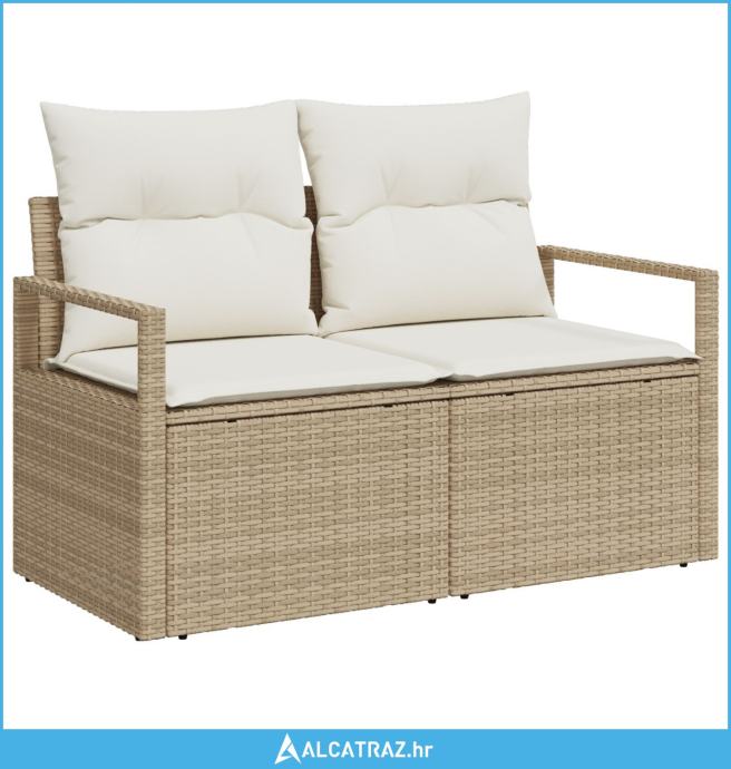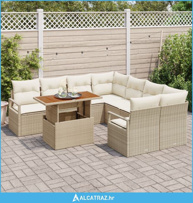 set vrtnog sofe od 9 dijelova s jastučićima bež poli ratan akacija, 2-