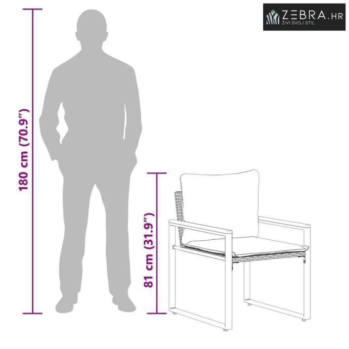 Čvrsti ratan: Leđa i okvir napravljeni su od kvalitetnog ratana koji štiti namještaj od vremenskih uvjeta, osiguravajući dugotrajnost. Prirodna tekstura i atraktivan dizajn čine ga odličnim izborom za vanjske prostore, poboljšavajući atmosferu vašeg vrta ili terase.