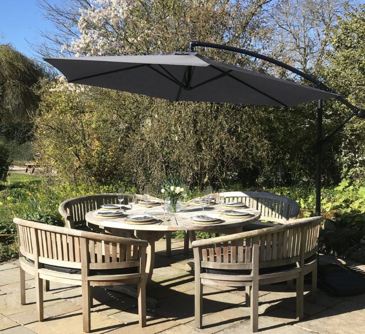 Vješajući stil ovog suncobrana ne smeta vam, što vam omogućuje da maksimalno iskoristite svoje zasjenjeno područje. S postoljem sa strane, ovaj atraktivni suncobran upotpunit će svaki vanjski namještaj.