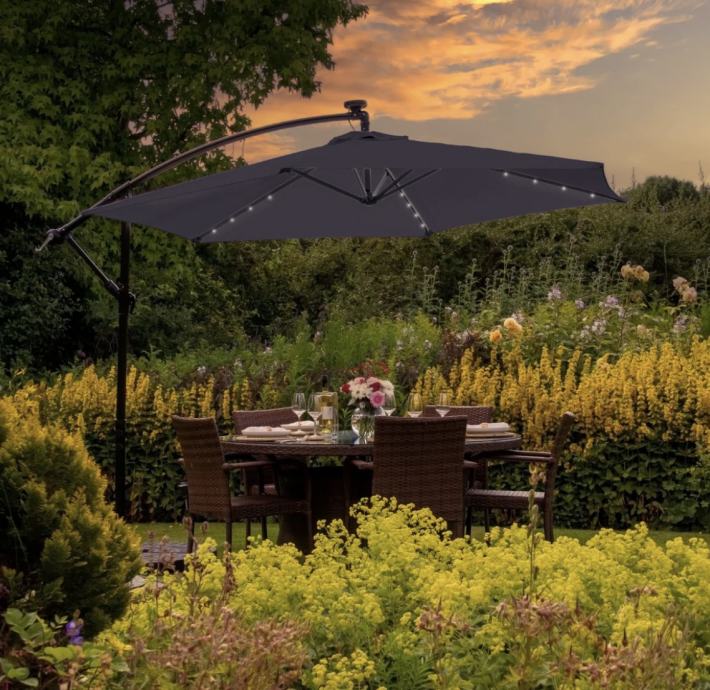 Mehanizam za namatanje pomoću ručice znači da svoj suncobran možete podići u trenu kako biste maksimalno iskoristili sunčane dane. Zatim ga jednostavno nagnite do savršenog kuta kako biste dobili potreban pokrov. Sposoban je rotirati punih 360 stupnjeva i omogućuje jednostavnu kontrolu sjene tijekom dana dok se sunce pomiče. Viseća konstrukcija ovog suncobrana sprječava da stalak smeta, omogućujući vam da maksimalno iskoristite svoje zasjenjeno područje. Kako bi stvari bile ugodne i hladne, na vrhu nadstrešnice nalazi se diskretan otvor koji pomaže u boljem protoku zraka. To također pomaže stabilnosti smanjenjem pritiska vjetra.