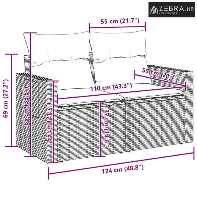 1 x Srednje sjedalo: 55 x 62 x 85 cm (ŠxDxV)