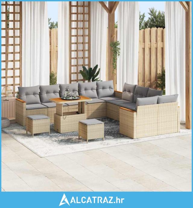 Sjedeća garnitura za vrt s jastukom 13 pcs Bež Poli ratan - NOVO