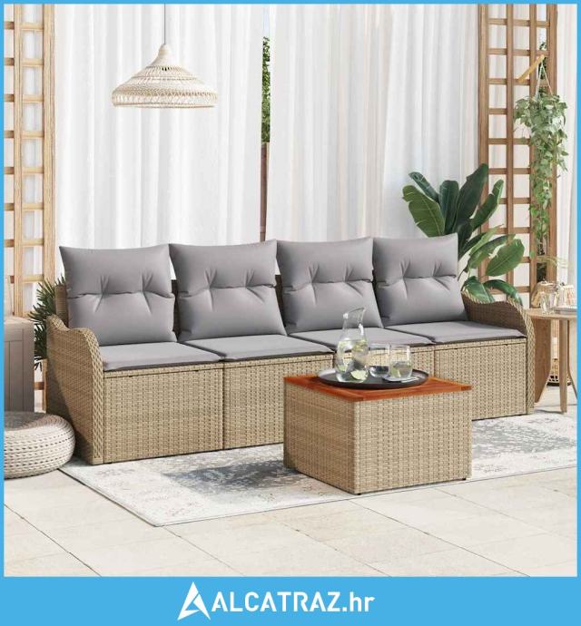 Sjedeća garnitura za vrt s jastukom 5 pcs Bež i svijetlo siva - NOVO