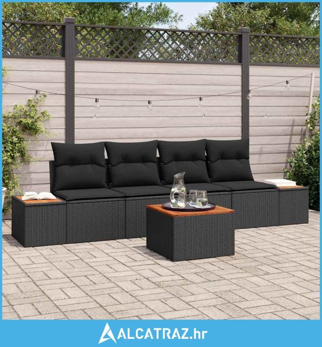 Sjedeća garnitura za vrt s jastukom 5 pcs Crna Poli ratan - NOVO