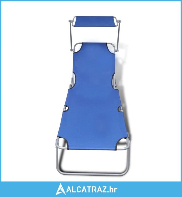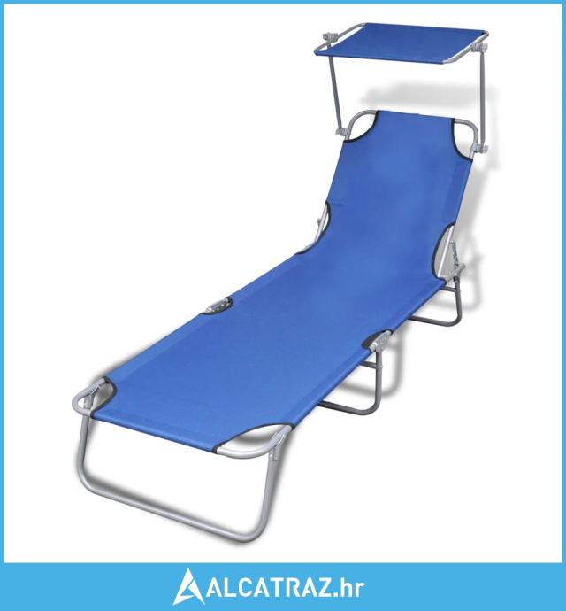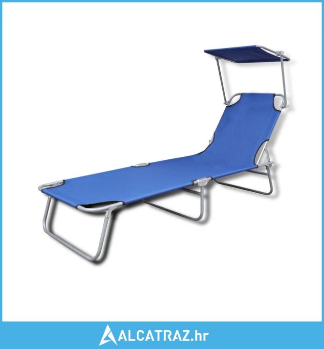 Sklopiva ležaljka za sunčanje s baldahinom čelik i tkanina plava - NOV