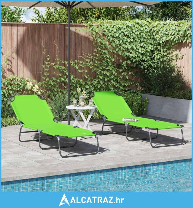 Ovaj set sklopivih ležaljki za sunce osmišljen je za savršeno opuštanje, bilo da si u svom vrtu ili na balkonu. Njena svijetlozelena boja i moderni dizajn ne samo da poboljšavaju tvoj vanjski izgled, već i pružaju udobno mjesto za sunčane dane.