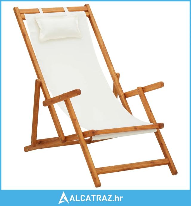 Sklopiva stolica za plažu od drva eukaliptusa i tkanine krem - NOVO
