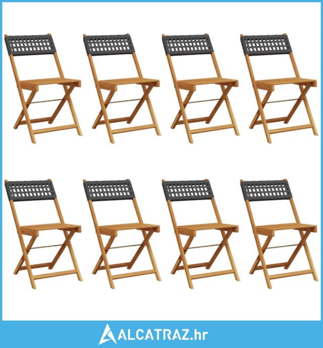 Sklopive vrtne stolice 8 kom crni od poliratana i masivnog drva - NOVO