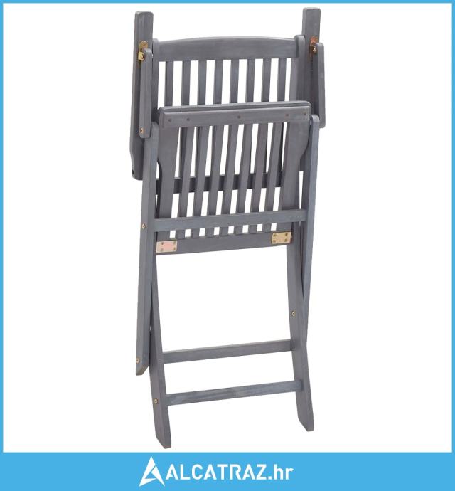 Ove blagovaonske stolice napravljene su od masivnog bagremovog drva, tropskog tvrdog drva, zbog čega su otporne na vremenske utjecaje i izdržljive za dugogodišnju upotrebu. Masivno drvo bagrema ima snagu da podnese težinu i izdrži trošenje uzrokovano vremenom. Siva izbijeljena površina lako se čisti vlažnom krpom. Stolice se mogu sklopiti radi uštede prostora kad se ne upotrebljavaju. Uz to, uključeni jastuci daju vam dodatnu udobnost dok se odmarate ili objedujete. Svaki jastuk sadrži dva seta vezica za snažno pričvršćivanje na stolicu.