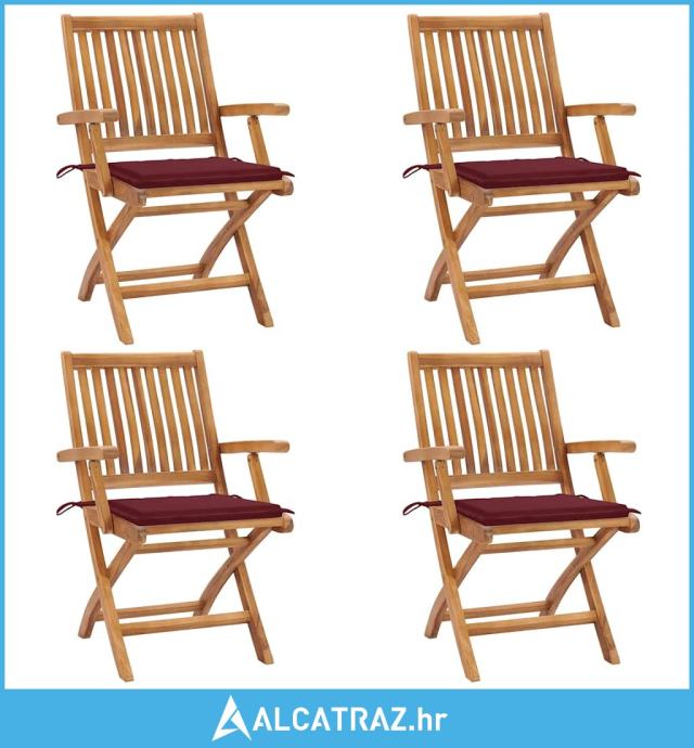 Sklopive vrtne stolice s jastucima 4 kom od masivne tikovine - NOVO