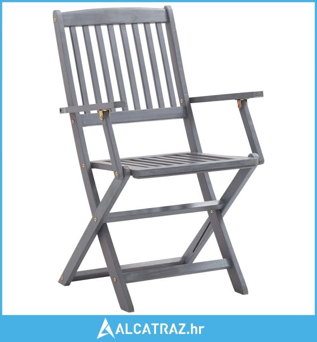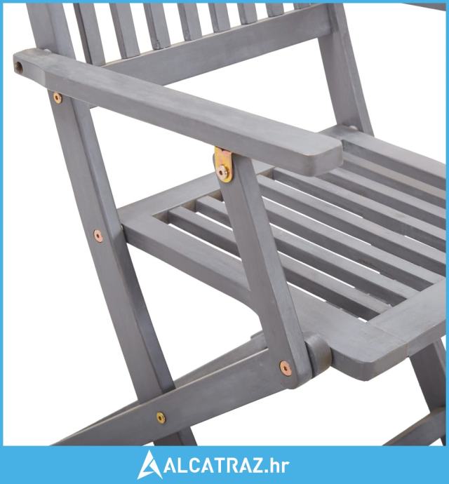 Ove blagovaonske stolice napravljene su od masivnog bagremovog drva, tropskog tvrdog drva, zbog čega su otporne na vremenske utjecaje i izdržljive za dugogodišnju upotrebu. Masivno drvo bagrema ima snagu da podnese težinu i izdrži trošenje uzrokovano vremenom. Siva izbijeljena površina lako se čisti vlažnom krpom. Stolice se mogu sklopiti radi uštede prostora kad se ne upotrebljavaju. Uz to, uključeni jastuci daju vam dodatnu udobnost dok se odmarate ili objedujete. Svaki jastuk sadrži dva seta vezica za snažno pričvršćivanje na stolicu.
