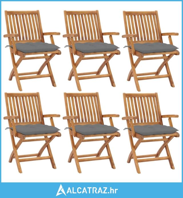 Sklopive vrtne stolice s jastucima 6 kom od masivne tikovine - NOVO