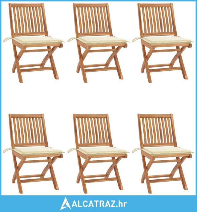 Sklopive vrtne stolice s jastucima 6 kom od masivne tikovine - NOVO
