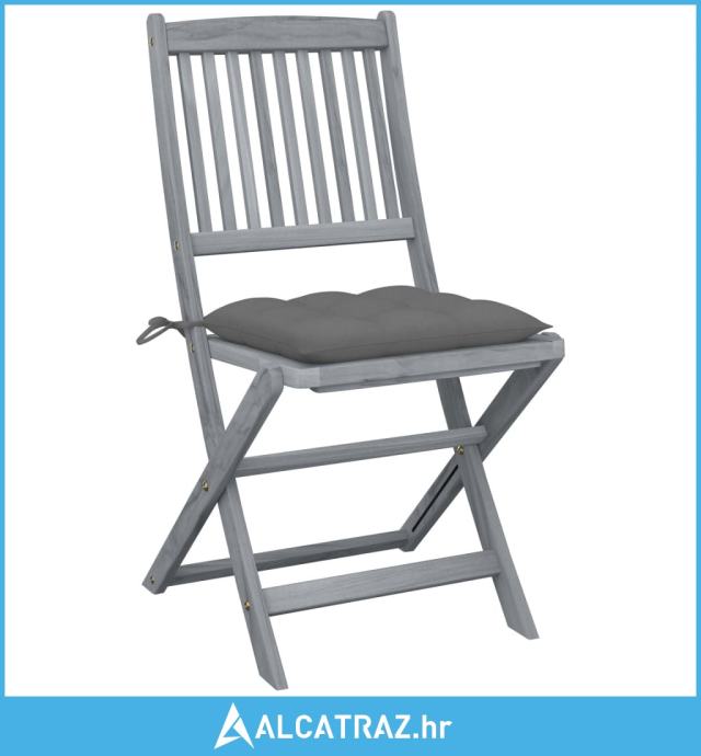 Ove blagovaonske stolice napravljene su od masivnog bagremovog drva, tropskog tvrdog drva, zbog čega su otporne na vremenske utjecaje i izdržljive za dugogodišnju upotrebu. Masivno drvo bagrema ima snagu da podnese težinu i izdrži trošenje uzrokovano vremenom. Siva izbijeljena površina lako se čisti vlažnom krpom. Stolice se mogu sklopiti radi uštede prostora kad se ne upotrebljavaju. Uz to, uključeni jastuci daju vam dodatnu udobnost dok se odmarate ili objedujete. Svaki jastuk sadrži dva seta vezica za snažno pričvršćivanje na stolicu.