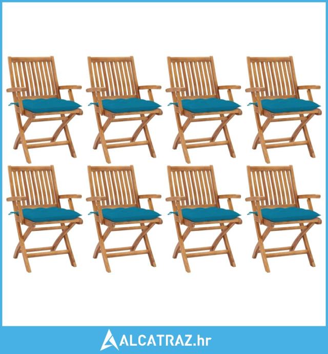 Sklopive vrtne stolice s jastucima 8 kom od masivne tikovine - NOVO