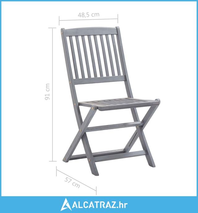 Ove blagovaonske stolice napravljene su od masivnog bagremovog drva, tropskog tvrdog drva, zbog čega su otporne na vremenske utjecaje i izdržljive za dugogodišnju upotrebu. Masivno drvo bagrema ima snagu da podnese težinu i izdrži trošenje uzrokovano vremenom. Siva izbijeljena površina lako se čisti vlažnom krpom. Stolice se mogu sklopiti radi uštede prostora kad se ne upotrebljavaju. Uz to, uključeni jastuci daju vam dodatnu udobnost dok se odmarate ili objedujete. Svaki jastuk sadrži dva seta vezica za snažno pričvršćivanje na stolicu.