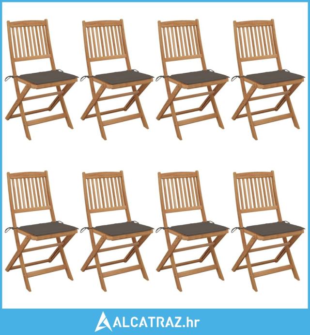 Sklopive vrtne stolice s jastucima 8 kom masivno bagremovo drvo - NOVO