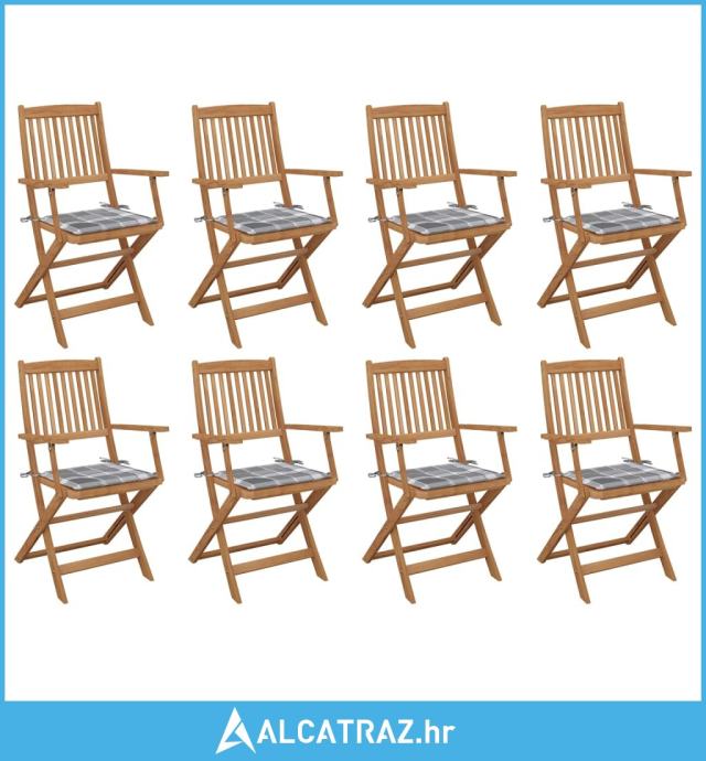 Sklopive vrtne stolice s jastucima 8 kom masivno bagremovo drvo - NOVO