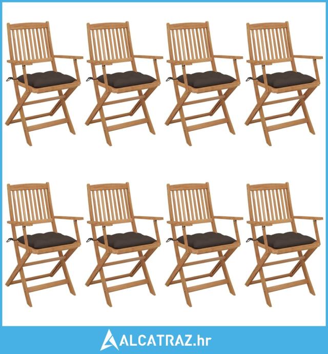 Sklopive vrtne stolice s jastucima 8 kom masivno bagremovo drvo - NOVO