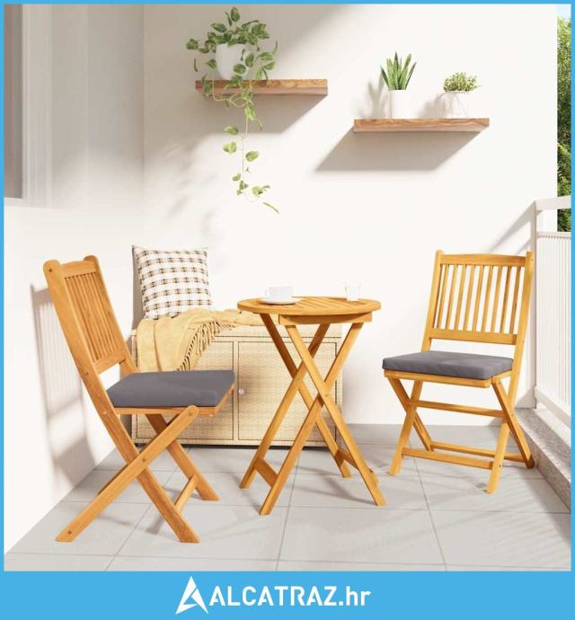 Sklopive Vrtne Stolice s Sivoj Jastuku 2kom Solidna Akacija - NOVO
