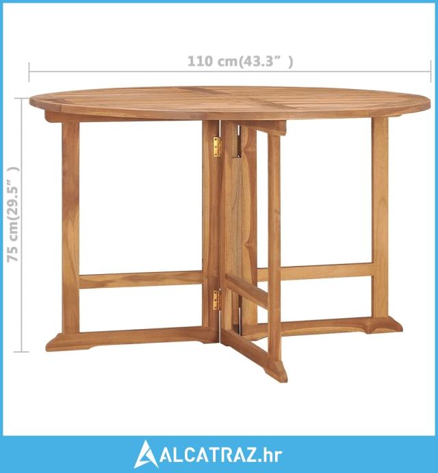 Sklopivi vrtni blagovaonski stol Ø110x75 cm od masivne tikovine - NOVO