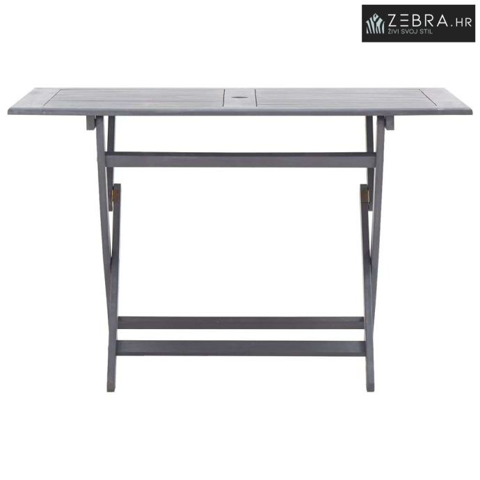 Vanjski blagovaonski stol napravljen je od masivnog bagremovog drva, tropskog tvrdog drva, koje je otporno na vremenske utjecaje i vrlo izdržljivo. Ima otvor u sredini za čvrsto držanje suncobrana. Vanjski stol može se sklopiti radi uštede prostora kad nije u upotrebi. Blagovaonski stol potrebno je sastaviti.