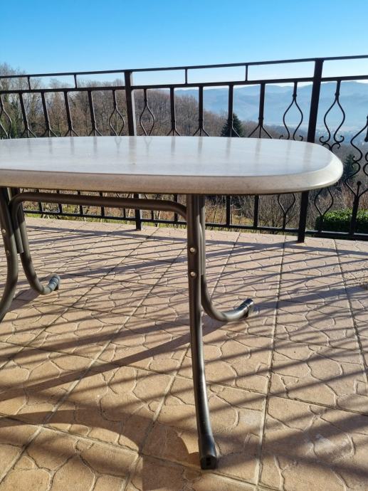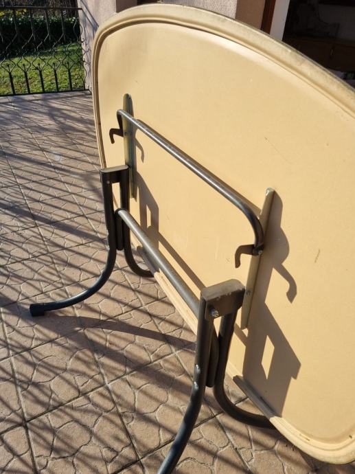 Prodajem praktičan sklopivi stol za terasu, balkon ili vrt. Stol je stabilan, čvrste metalne konstrukcije s plastičnom pločom, jednostavan za sklapanje i spremanje. Idealan za obiteljska okupljanja, roštilj ili povremeno korištenje na otvorenom.
