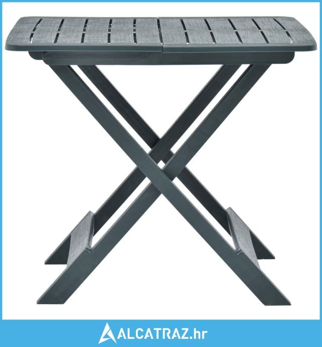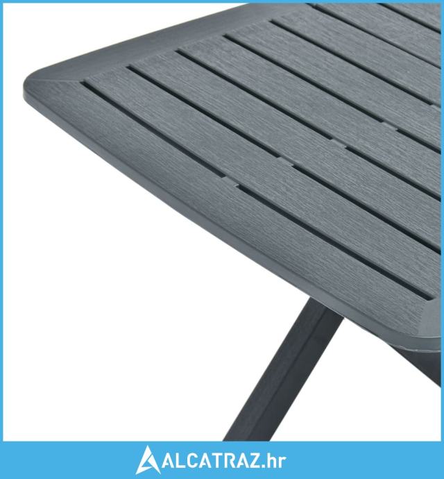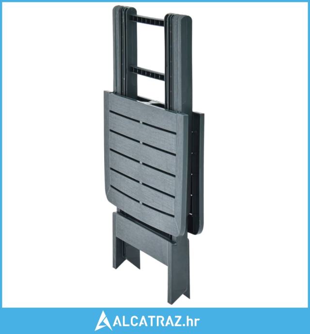 Ovaj stol donijet će dašak šarma vašem dvorištu, trijemu ili drugim vanjskim prostorima! Vrtni stol napravljen je od izdržljive plastike otporne na vremenske utjecaje, koja ne zahtijeva održavanje, što je prikladno za svakodnevnu upotrebu. Stolna ploča s rešetkastim dizajnom daje dodatnu eleganciju. Kad se ne upotrebljava, stol se može sklopiti kako bi se uštedio prostor. Nije potrebno sastavljanje.