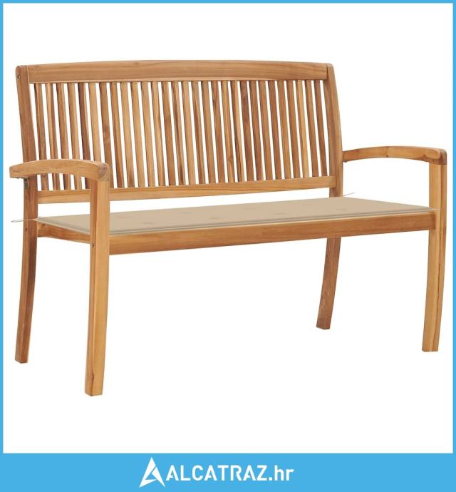 Složiva vrtna klupa s jastukom 128,5 cm od masovne tikovine - NOVO